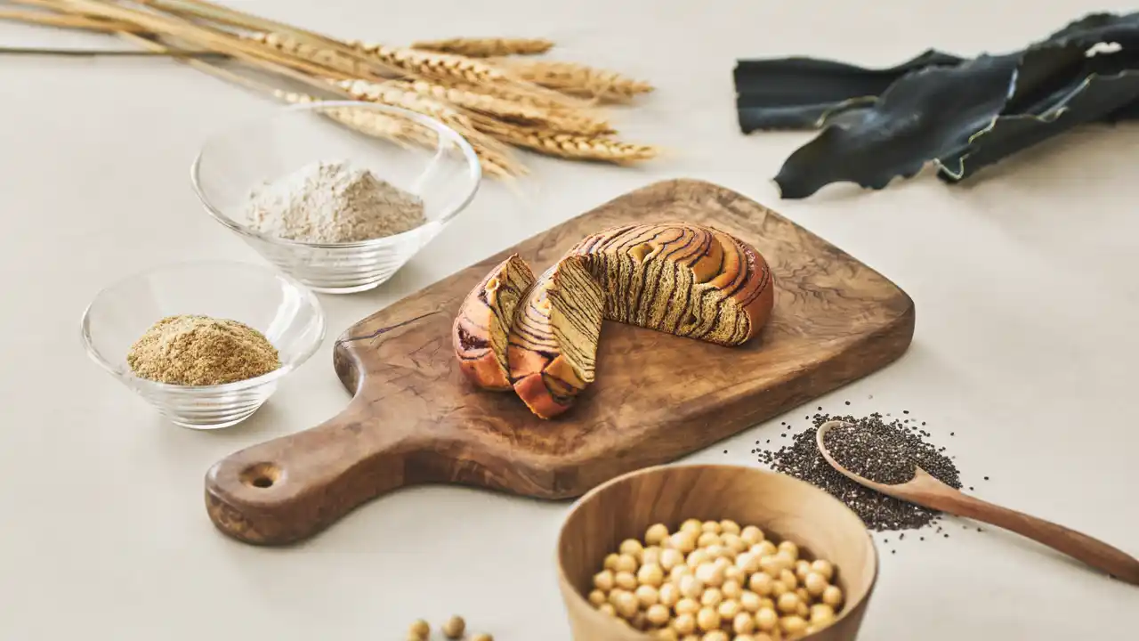 チョコレートフラワーペースト(国内製造)、小麦全粒粉、小麦たんぱく、大豆粉、水あめ、粗糖、パン酵母、チアシード、油脂加工食品、米ぬか粉、乳たんぱく、醸造酢、ミルクカルシウム、食塩、昆布粉末、粉末油脂、卵黄粉末/増粘剤(加工でん粉、増粘多糖類)、調味料(無機塩等)、乳化剤、酸味料、香料、(一部に小麦・卵・乳成分・大豆・ゼラチンを含む) |