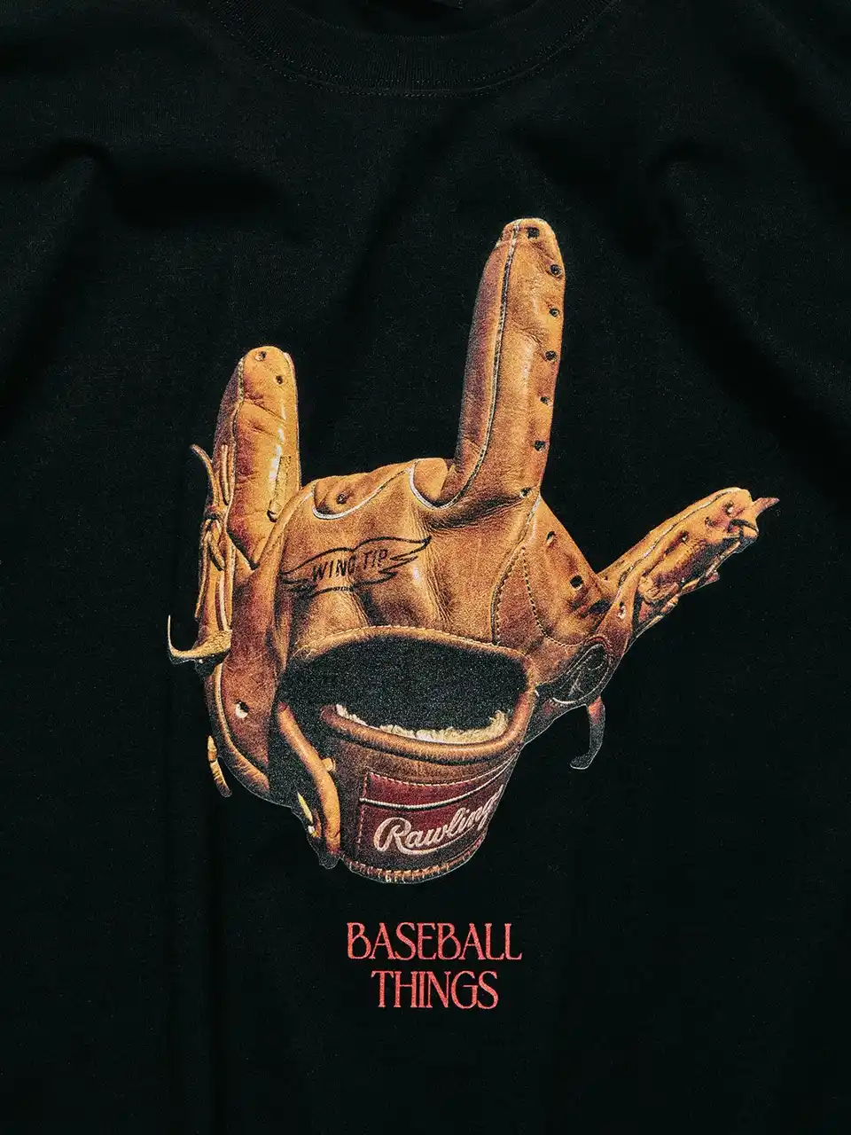 「BASEBALL THINGS」直訳で「野球のこと」。グラブのハンドサインで“LOVE”を表現し、野球への想いをユーモラスに落とし込んだグラフィック。 |