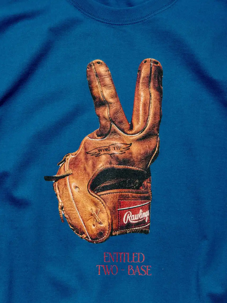 「ENTITLED TWO BASE」エンタイトルツーベースをモチーフにしたデザイン。フェアゾーンでバウンドしたボールがそのままスタンドに入るプレーを、ツーベース=ピースサインで表現している。なお、「ENTITLED TWO BASE」は日本独自のBASEBALL用語であり、和製英語として知られている。 |