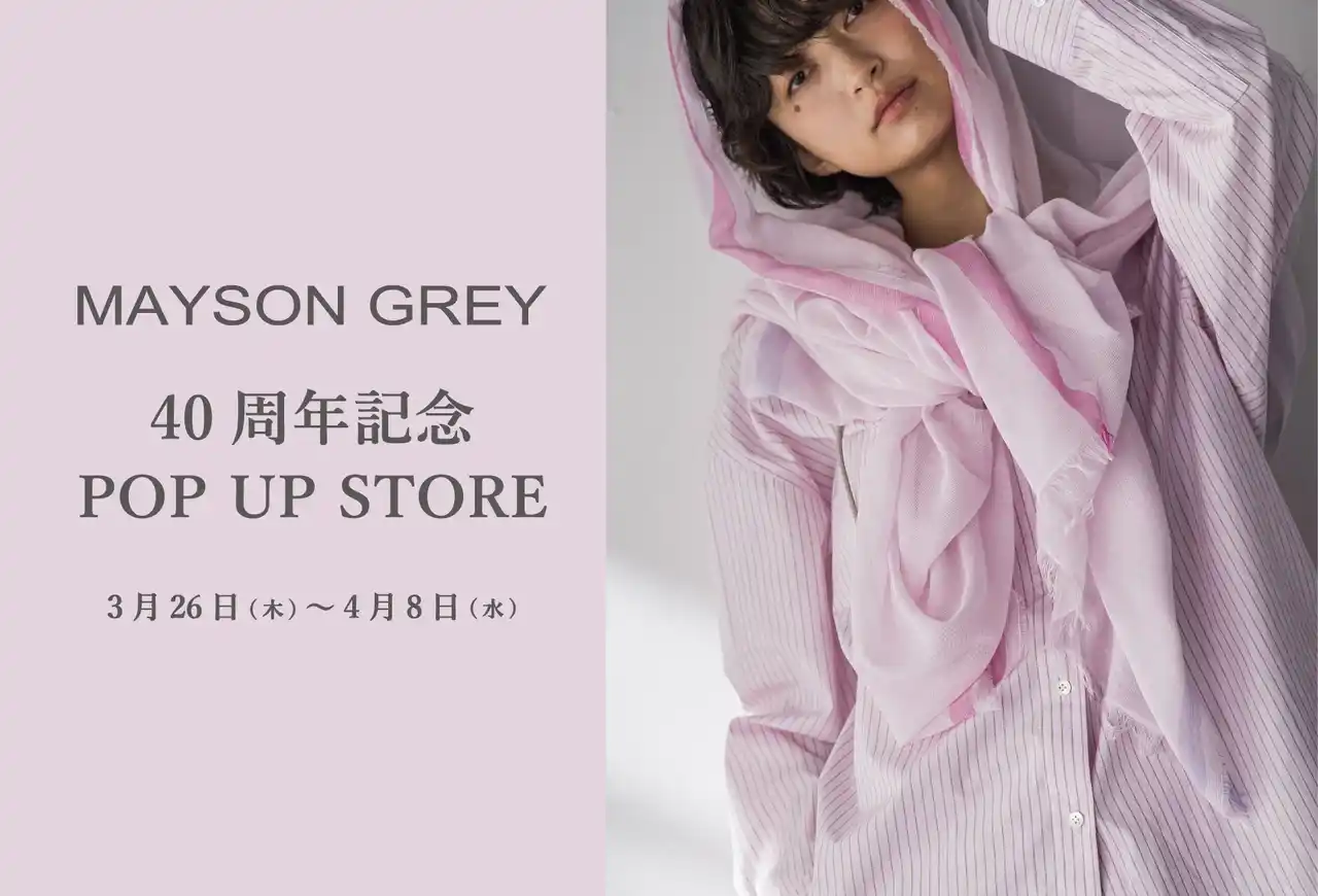 株式会社ジャヴァコーポレーション(神戸市中央区/代表取締役社長 浅見 幸正)が運営するレディースブランド「MAYSON GREY(メイソングレイ)」は、3月26日(木)~4月8日(水)までの期間、京王百貨店新宿店3階イベントスペースにてPOP UP STOREを開催いたします。期間中はオリジナルのノベルティ特典もございます。