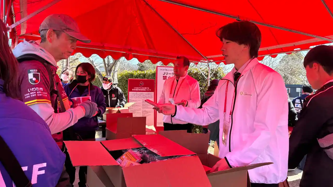 本取り組みは、東日本大震災の発生から15年となる3月11日を前に、いわきFCといわき市が連携して実施したものです。スタジアムに来場した皆さまとともに、災害時に発生する健康二次被害を防ぐ取り組みや「防災健康サポーター」の活動について理解を深め、改めて命を守る大切さを学ぶ機会とすることを目的に開催されました。 |