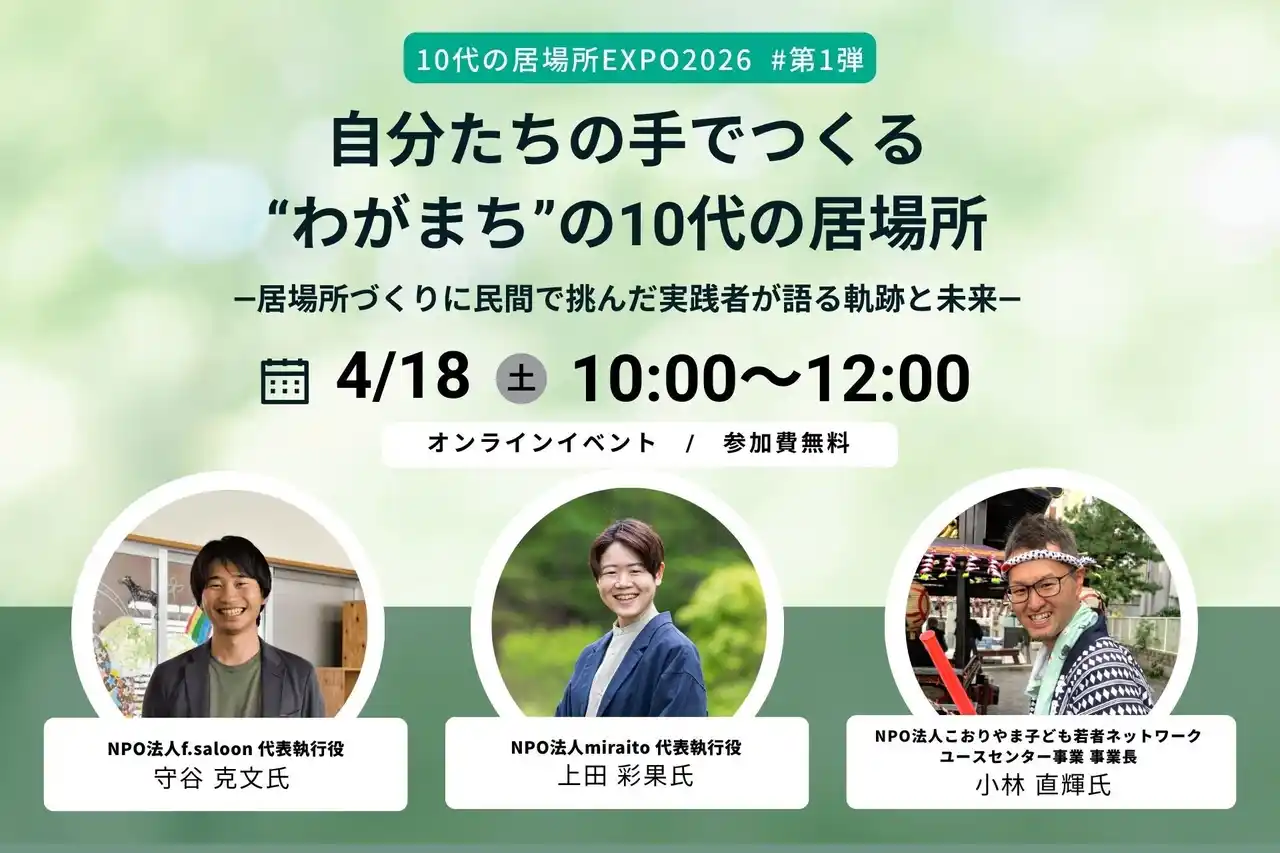 こうした社会の動きを背景に全国で居場所づくりの機運が高まるなか、実践からさらなる居場所の可能性を探るべく、連続イベントとして4月18日より「10代の居場所EXPO2026」を開催します。 |