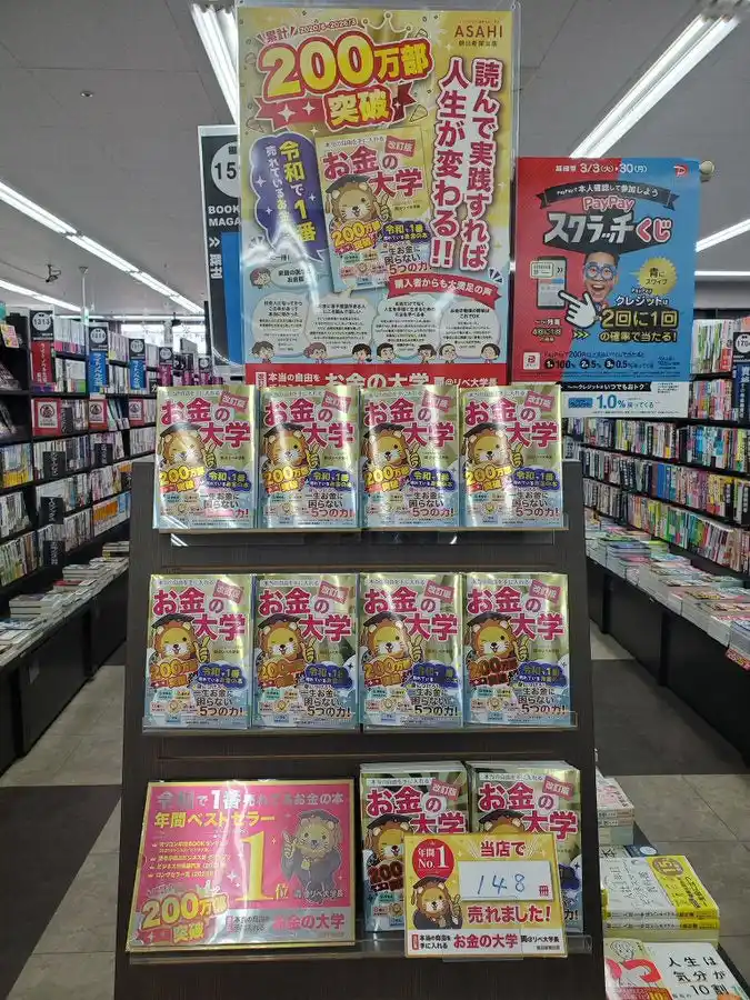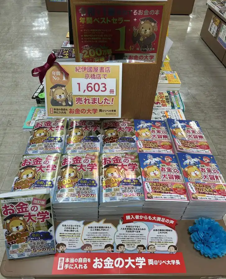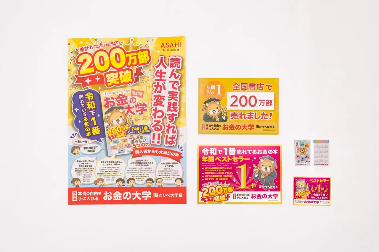 | 株式会社朝日新聞出版は、両@リベ大学長 著『改訂版 本当の自由を手に入れる お金の大学』(2024年11月発売)が累計200万部を突破したことを記念し、全面がキラキラ光る「スペシャルカバー版」の展開を開始しました。協力書店では特設パネル・POPの掲示やオリジナルカードカレンダーの配布を実施しています。 | ||||||||||||||