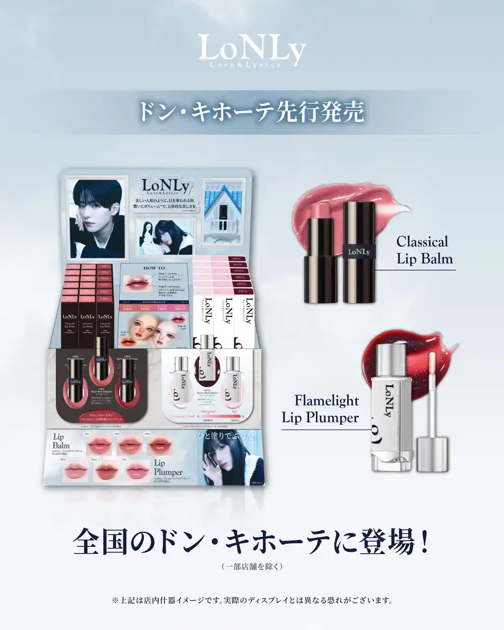 LoNLy株式会社(本社:東京都中央区)のコスメブランドLoNLy(ロンリー)は2026年4月2日より「クラシカルリップバーム」、新色「フレイムライトリッププランパー」を全国のドン・キホーテ系列店舗にて発売(一部店舗除く)に加えて、ドン・キホーテが主催する人気コスメイベント「#ドンコスフェスティバル 2026SS」に選出いたしましたことを、株式会社 月架世交易(本社:東京都中央区、代表取締役社長:文賢宇(ムン・ヒョヌ))より発表いたします。 |