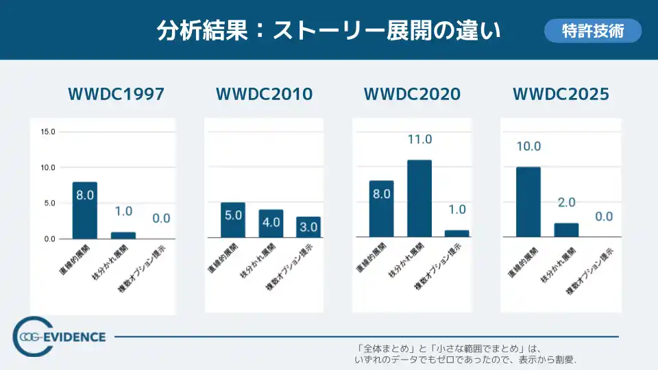 ■ 主な結果1.:WWDC1997と2025は「直線展開」―ストーリー展開の分析 |
