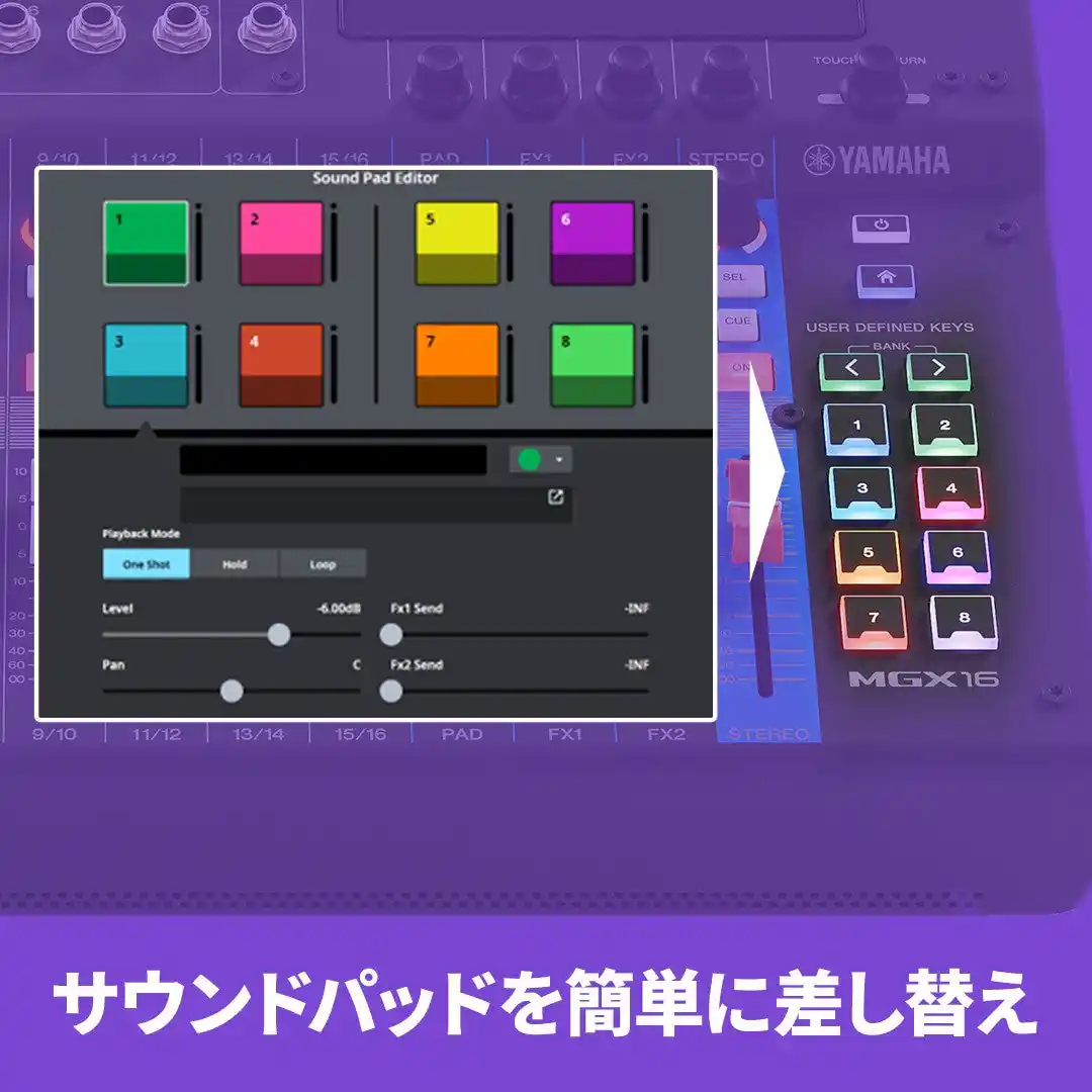 「Sound Pad Editor」機能の追加 (「MGXシリーズ」のみ)や ステレオペア対応、microSDの機能追加などを含む30項目以上の改善を実施しました。各種機能の改良、バグ修正および安定性の向上も含まれます。 |