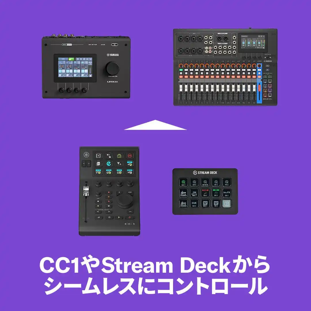 今回のアップデートにより、「CC1」やElgato社の「Stream Deck」から「MGXシリーズ」「URXシリーズ」の主要機能を操作可能になることで、ライブPAオペレーション、配信、レコーディング時のワークフローを迅速に進めることができます。 |