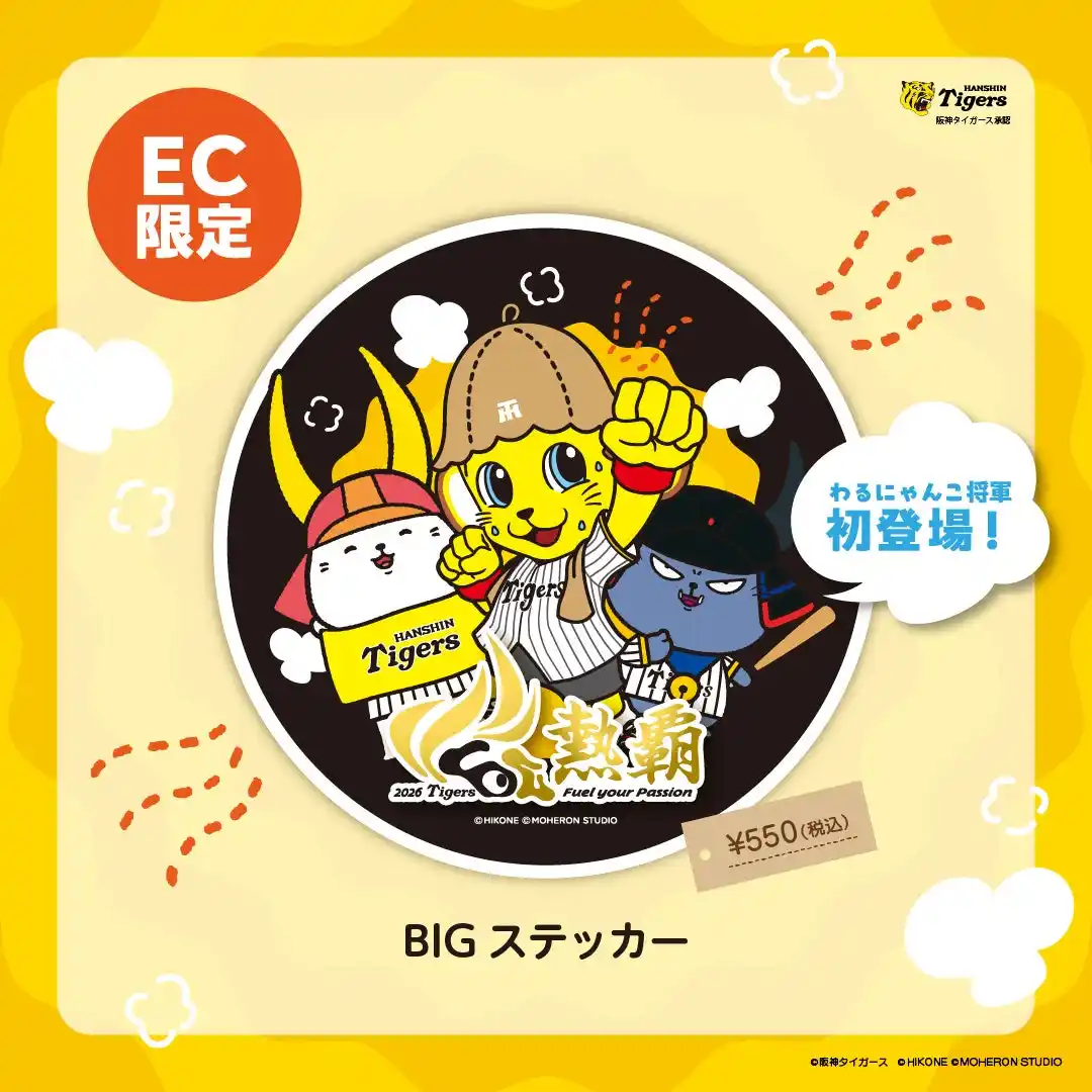 ソーシャルグッドプロデュース企業のアインズ株式会社(本社:滋賀県蒲生郡竜王町鏡2291番地3、代表取締役社長:谷口 彰)は、プロ野球球団「阪神タイガース」と、滋賀県彦根市の人気キャラクター「ひこにゃん」とのコラボレーションによる2026スローガン「熱覇」グッズを、プロ野球公式戦の開幕日である2026年3月27日(金)より、店頭およびECサイトにて販売開始いたします。 |