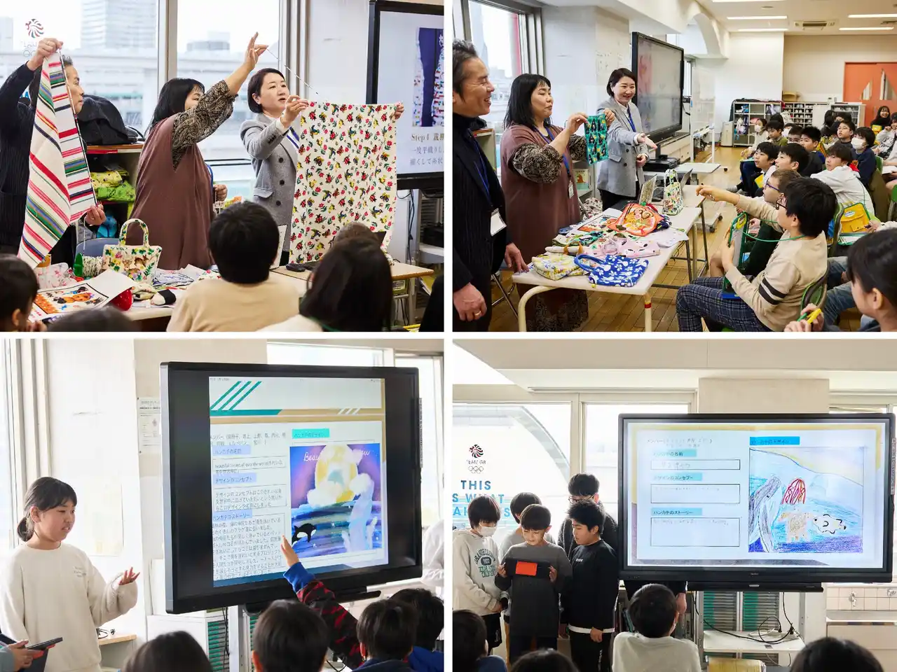 プロジェクトにあたり、子ども達がハンカチのデザインを考えるだけでなく、フェイラージャパンの社員が講師となり、どのように商品が作られているのか、ブランドビジネスやマーケティングなどについても学べる機会を作り、その後、子供たちは自らが考えたデザインとコンセプトなどのプレゼンを行う特別授業を行いました。フェイラーのデザインには、そのひとつひとつに名前とストーリーがあります。今回のプロジェクトでも、子供たちと一緒にハンカチの名前とストーリーを考え、そして、ハンカチを特別なものにするためにオリジナルパッケージも作りました。そして、最後に、フェイラー銀座本店での販売体験に向け、販売の基本を学び、ロールプレイも行い、全4回の特別授業が終了いたしました。 |