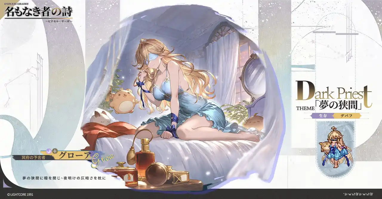 『名もなき者の詩』にて、生と死、そして再生の境界を揺るがす新たな物語が、いま静かに幕を開けます。今回現すのは、万霊を蝕みながらも深淵の底で“生”を司る孤独な存在ーー冥府の予言者・グローア。彼女が奏でる骨笛の音色は、戦場のリズムを書き換え、冒険者たちに未知なる試練と救済をもたらすでしょう。 |