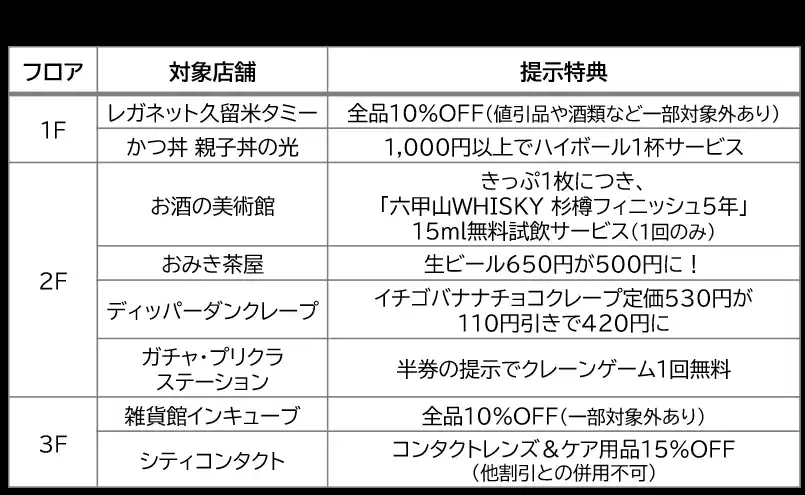 ■ きっぷの提示特典 |