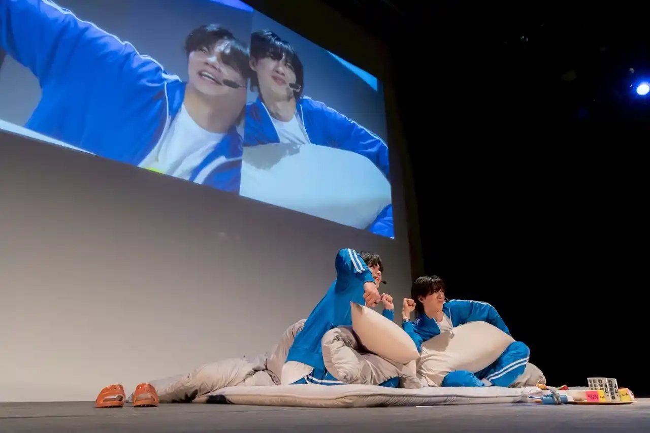 引き当てられた企画は、稜海の二人が舞台上でお布団に入っての修学旅行的トークするファン待望の!?「なま布団」。お互いに手紙を書いて謎に客席を練り歩く「卒業」。会場をフルに使った「稜海さんが◯◯になっちゃった」、二人がディレクターになってお客さんを巻き込んだ「番宣」企画など、前回以上にスペシャならではの楽しい企画が盛り沢山となっている。 |