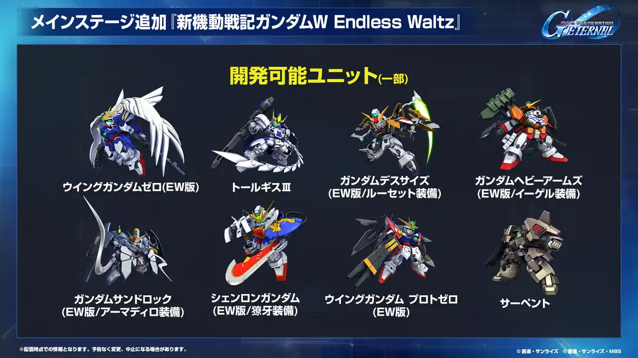 4月1日には『機動戦士ガンダム00』の開発経路図へ新たなユニットが追加、『新機動戦記ガンダムW Endless Waltz』の開発経路図が追加予定となります。 |