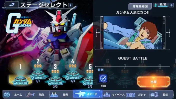 自分の好きなモビルスーツやキャラクターを集め、成長・開発・編成といった |