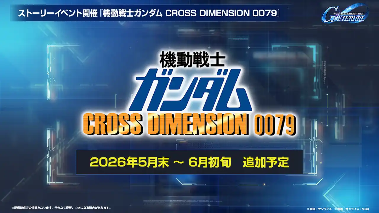 5月中旬~下旬頃にはストーリーイベント『機動戦士ガンダム サンダーボルト BANDIT FLOWER』、5月末~6月初旬頃にはストーリーイベント『機動戦士ガンダム CROSS DIMENTION 0079』、6月中旬~下旬頃にはストーリーイベント『機動戦士ガンダムSEED C.E.73 -STARGAZER-』の開催を予定しています。 |