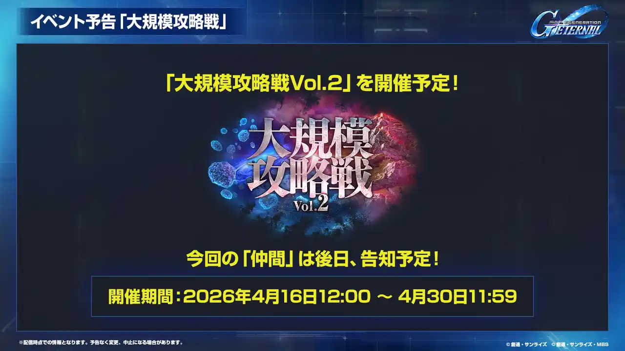 さらに「大規模攻略戦Vol.2」が4月16日より開催予定です。 |