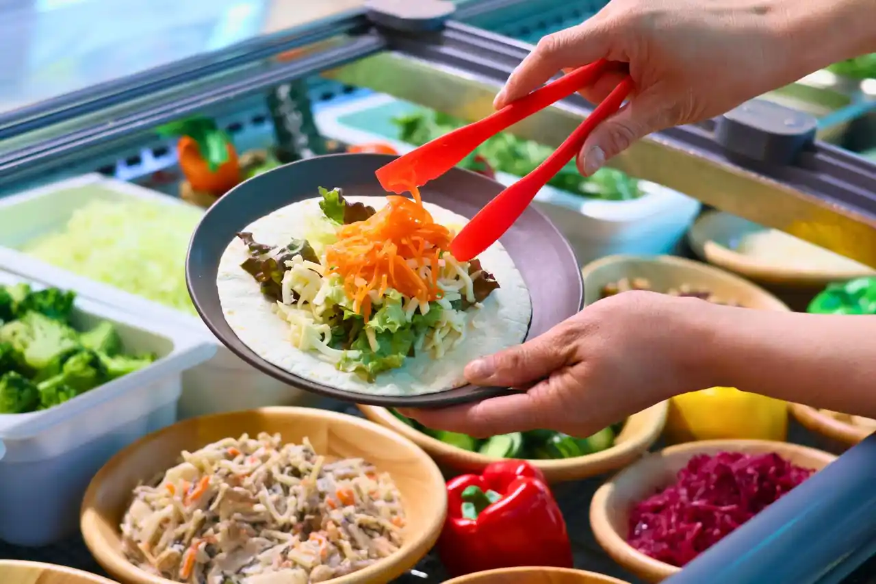 今回の注目コンテンツが、自由に作れるサラダ&タコスコーナー。今人気のタコスで肉、野菜、ソースなどを自由に組み合わせ、自分だけの「MYタコス」を作ることができます。“選んで作る楽しさ”を体験できる食のエンターテインメントコーナーです。 |
