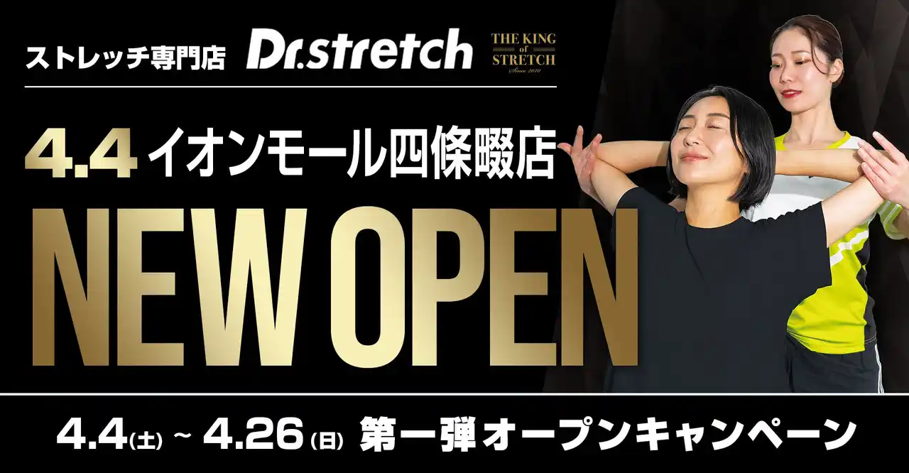 世界290店舗以上で独自技術「コアバランスストレッチ」を提供するストレッチ専門店『Dr.stretch』(株式会社nobitel、本社:東京都新宿区、代表取締役:黒川 将大)は、4月4日にイオンモール四條畷店をオープンいたします。 |