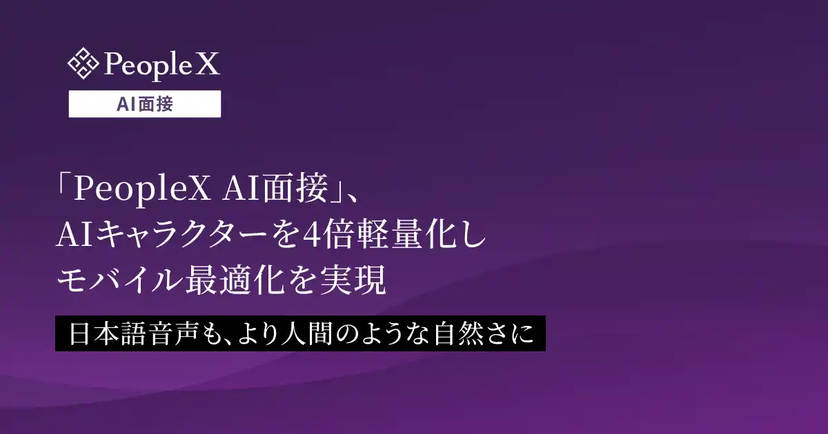 採用から活躍支援まで、AIで人事課題を解決する株式会社PeopleX(本社:東京都新宿区、代表取締役CEO:橘 大地、以下:当社)は、当社が提供する対話型AI面接サービス「PeopleX AI面接」のAI面接官「黒須ミライ」について、基盤となるAIモデル「Character AI」のアップデートを実施し、AIキャラクターの大幅な軽量化と音声品質の刷新を行ったことをお知らせいたします。 |