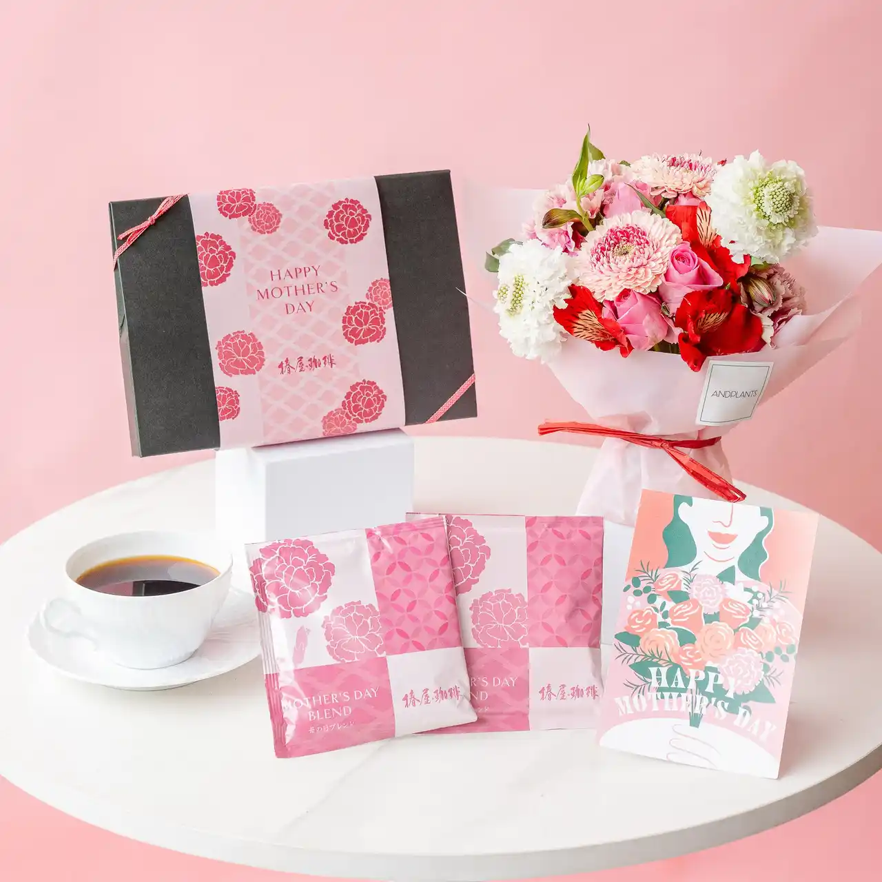 東和フードサービス株式会社(本社:東京都港区/代表取締役社長CEO:岸野 誠人)が運営する自家焙煎のスペシャルティコーヒーにこだわった「椿屋珈琲」は、花束や観葉植物の通販を展開する「AND PLANTS(アンドプランツ)」(HP:https://andplants.jp/)とコラボした母の日限定ギフトを販売しております。 |