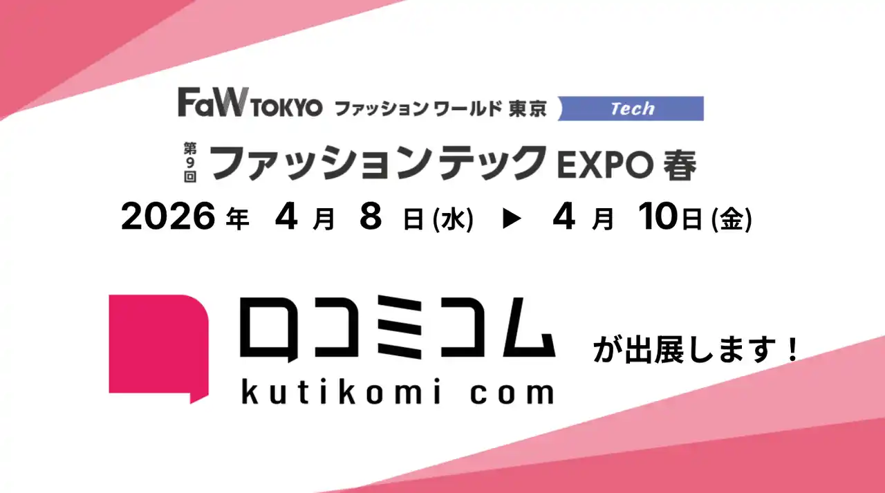 店舗向け集客一元化プラットフォーム「口コミコム」を運営する株式会社movは展示会「第9回ファッションテックEXPO 2026 春」に出展することをお知らせいたします。 |