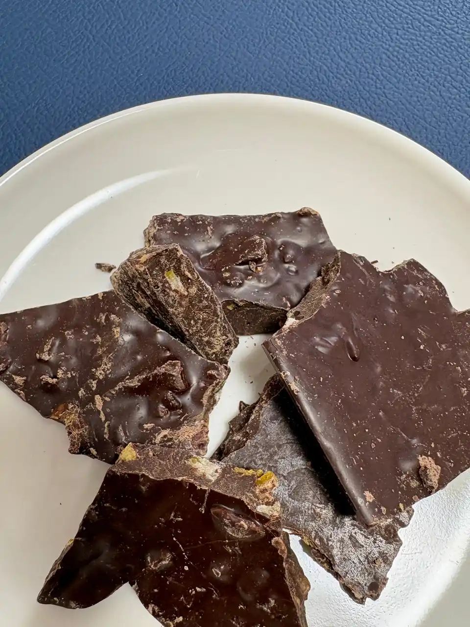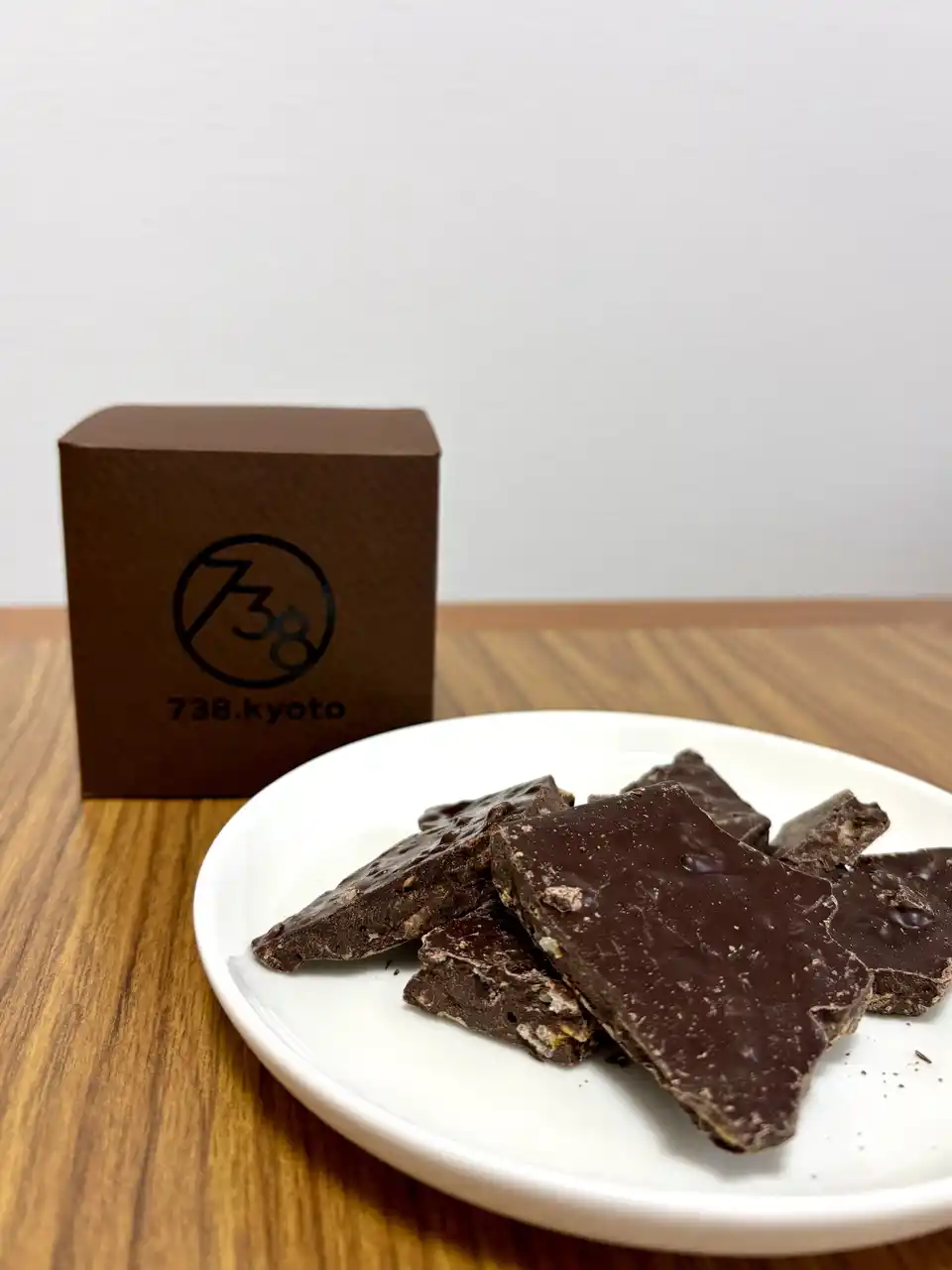 あえて不揃いに割ったビターチョコレートの中には、河内晩柑の皮を贅沢に砂糖漬けにしたピールが丁寧に練り込まれ、コーンフレークのザクッとした軽快な食感が重なります。 |