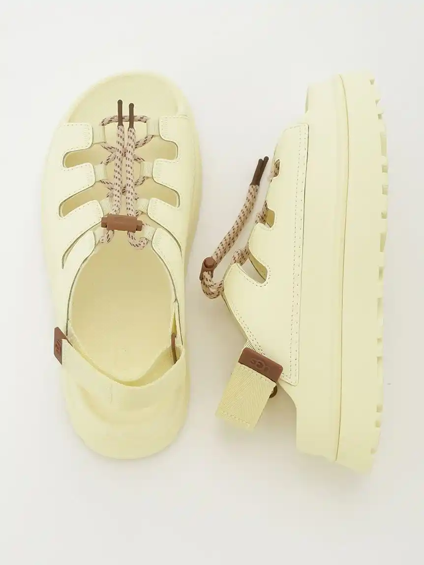 人気のGoldenGlowよりインスパイアされた、バックヒールストラップとレースアップで好みのフィット感が叶う新モデルGoldenGlow Toggle。別注では、バターのような滑らかなイエローを基調に、シューレースにはブラウンとベージュの2色使いで、キャッチーで華やかな季節を表現しました。反発性とサポート性に優れたサトウキビ由来のEVAを採用することで軽くて柔らかい履き心地、また水への耐性も強く、屋外で過ごすアクティブな日にも活躍します。 |