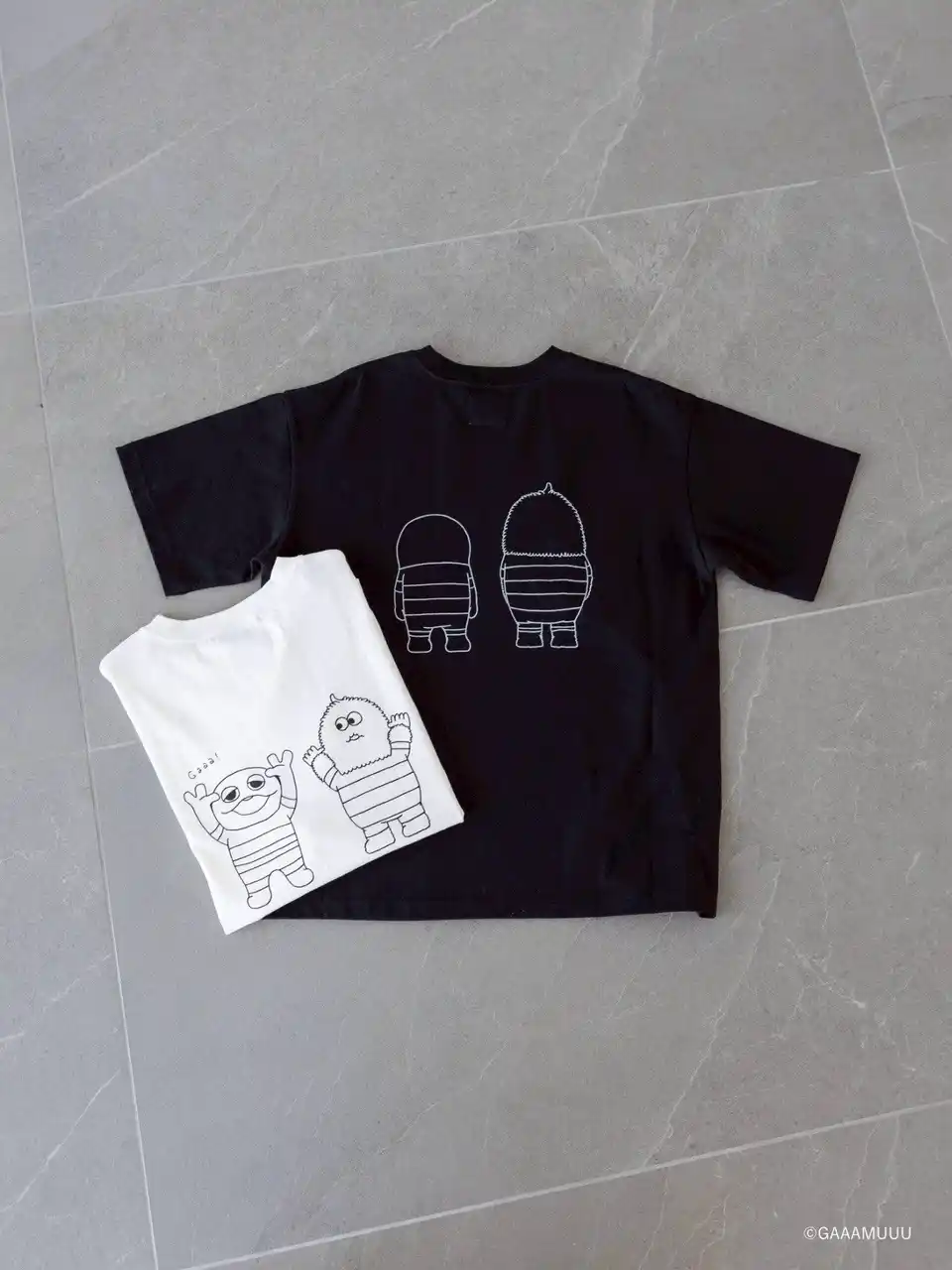 ガーとムーの持つ、ゆるくて力の抜けた空気感をそのままデザインに落とし込んだTシャツ。フロントはミニマルに、バックにはガーとムーの存在感をさりげなく感じさせるグラフィックを配置しました。主張しすぎない線画タッチが、キャラクターの可愛さと大人っぽさを絶妙なバランスで引き立ててくれます。キッズと並ぶと自然とリンクして見えるよう、モチーフや空気感を揃えています。キャラクターTシャツでありながら、日常のコーディネートにも取り入れやすいストリート感が魅力。 |