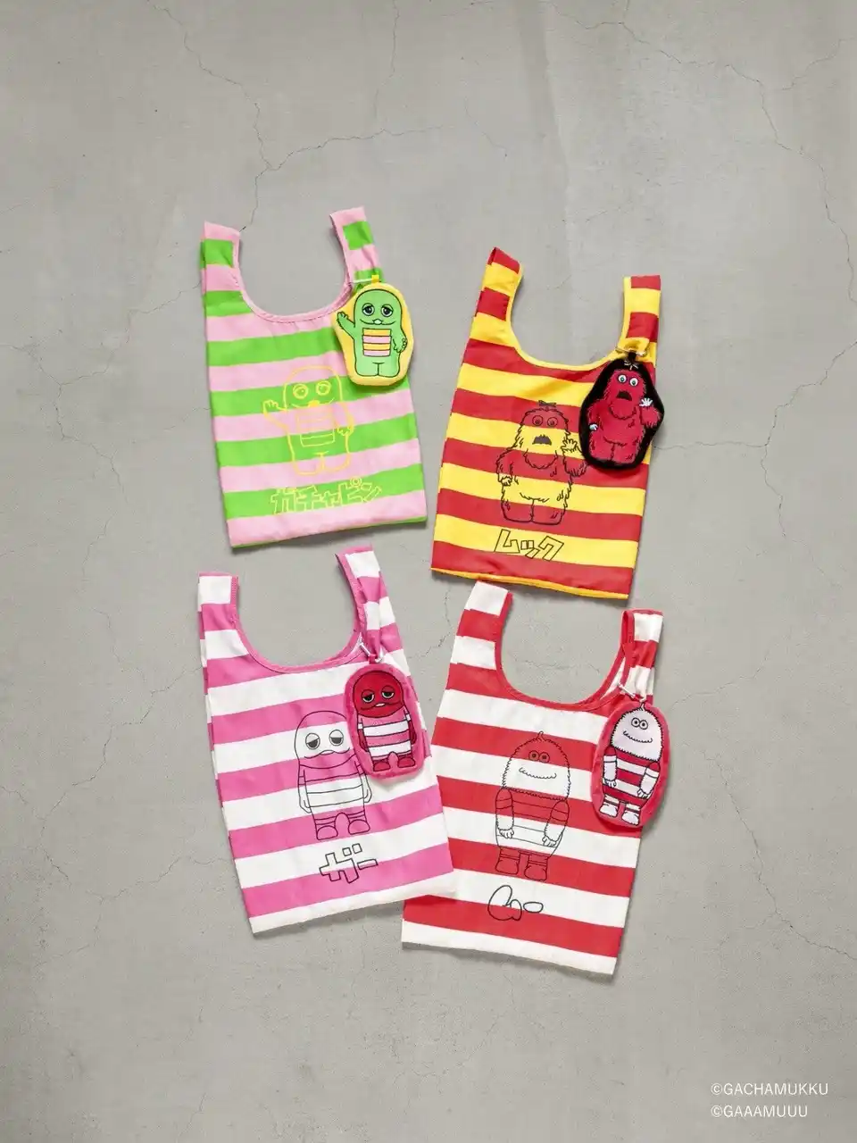カラー展開:ガチャピン、ムック、ガー、ムー |