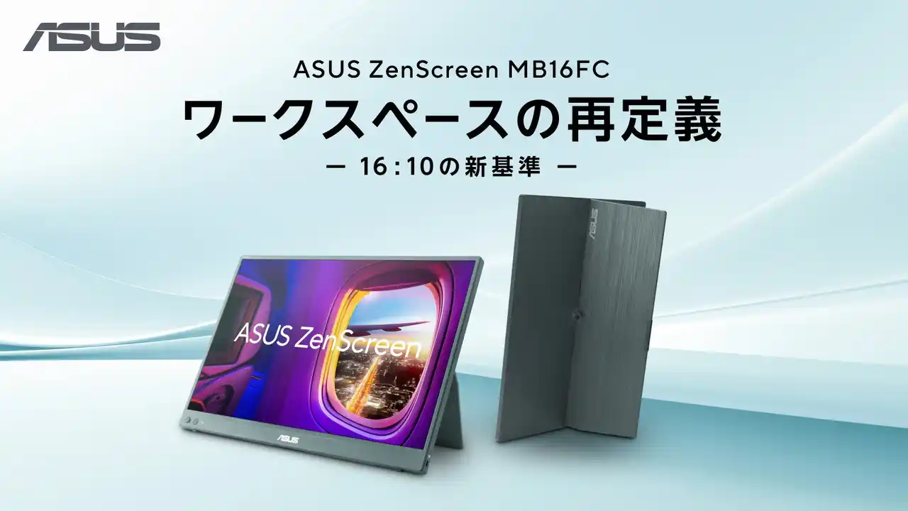 ASUS JAPAN株式会社は、ハイブリッドワークに最適な16型WUXGAポータブルモニター「ZenScreen MB16FC」を全国の量販店およびECサイトで2026年3月27日(金)より販売を開始いたします。 |