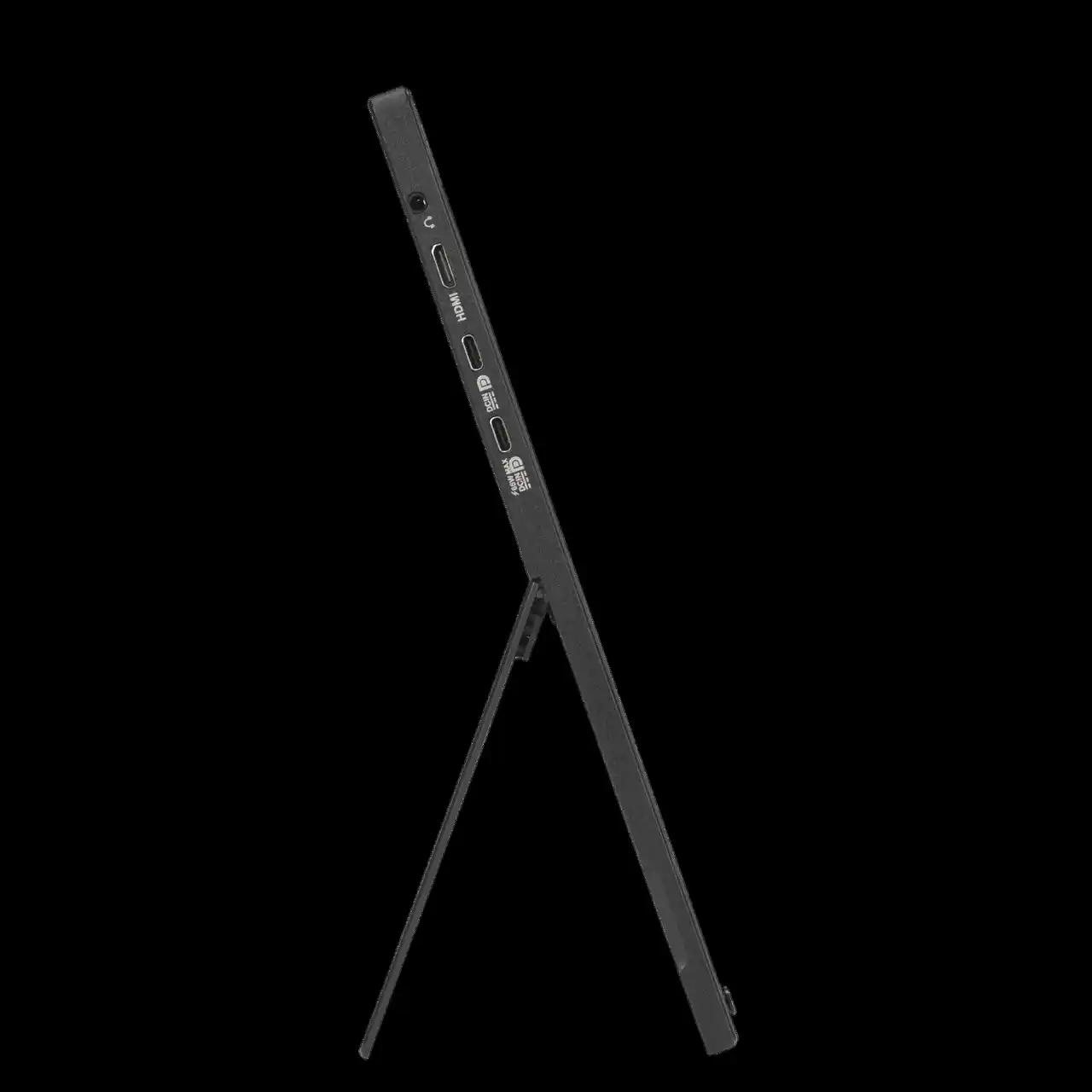 背面に備えた折りたたみ式キックスタンドは、0度から90度までシームレスに角度調整が可能。さらに、WindowsおよびmacOSに対応した「DisplayWidget Center」ソフトウェアを使用することで、モニターの向きを検知して画面表示を自動で回転させることができます(オートローテーション機能)。また、1/4インチの三脚ネジ穴を装備しているため、市販の三脚と組み合わせてサブモニターを最適な高さに配置することも可能です。 |