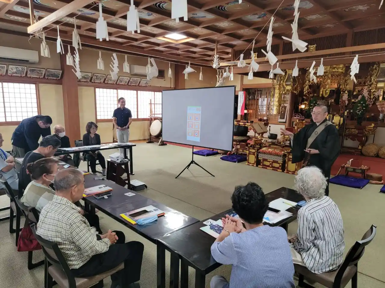 全国で開催されたお寺での終活スマホ教室の様子(大阪明浄寺)
