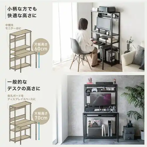 ・省スペースでもしっかり使えるコンパクト&高収納設計 ・高さ調整&広々天板で快適な作業姿勢を実現 ・配線・小物整理まで対応した高機能デザイン |