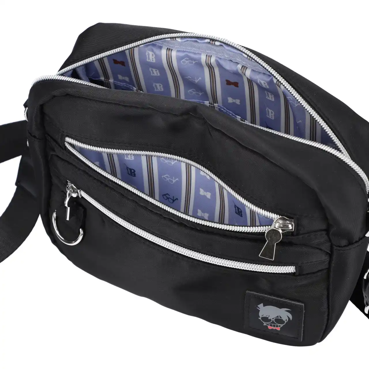 江戸川コナンのモチーフデザインの織りネームがポイントのショルダーバッグです。内生地には蝶ネクタイ型変声機や少年探偵団バッジなどのモチーフをあしらい、シンプルな見た目ながら作品の要素を感じられる一品に仕上げました。ファスナー付きの外ポケットなど収納力も抜群で、日常にさりげなく『名探偵コナン』を取り入れられます。 |