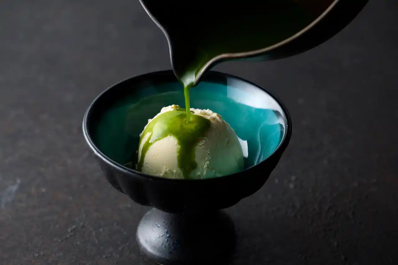 提供時には、抹茶の飲み方や味わい方について英語を含む多言語でご説明。あわせてお茶菓子もご用意し、食事の締めくくりにふさわしい落ち着いた時間を演出します。 |