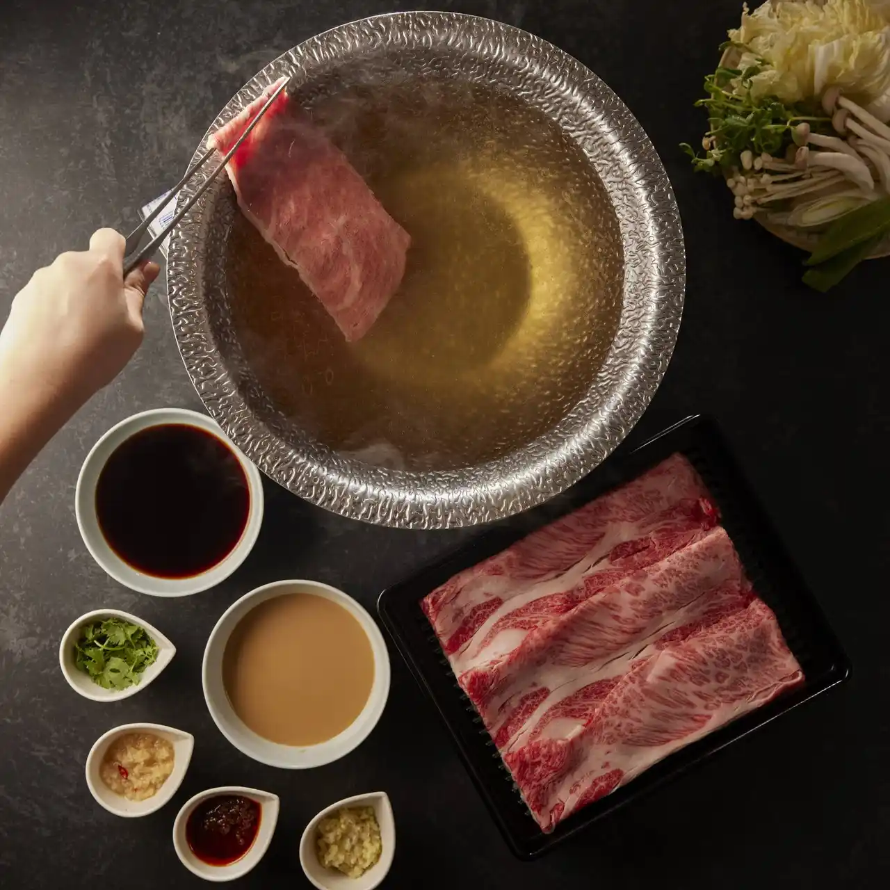本コースは、しゃぶしゃぶ・すき焼きの食べ放題に、スタッフがテーブルで抹茶を点てて提供する実演サービスを組み合わせた、訪日観光客向けの新プランです。食後のひとときに、日本らしい体験をお楽しみいただけます。 |