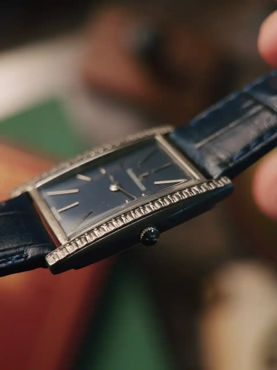 | このモデルは、銀無垢ケースという素材を用いながら、タンク型のアールデコスタイルという造形美と見事に調和している。 | |||||||||||