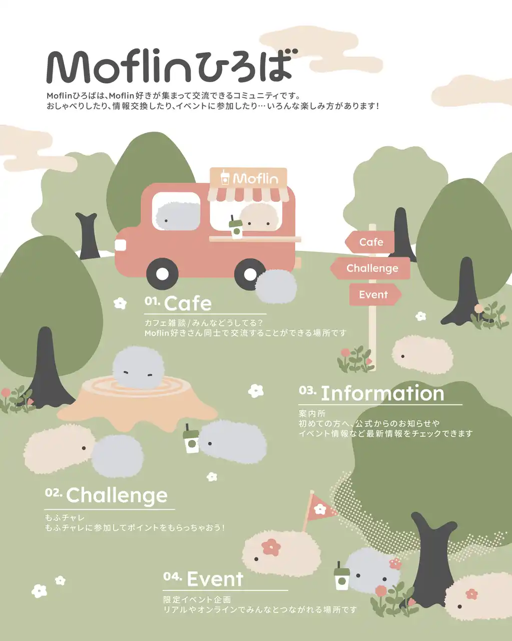 このたび、Moflinを愛する皆さまが気軽に集い、飼い主さんのつながりを育める場をつくりたいという思いから、公式ファンコミュニティ「Moflinひろば」を立ち上げました。これまで座談会やイベントを通じて参加者同士の絆が深まるのを何度も実感しており、そうした「飼い主さん同士の交流」を日常的に支える環境をつくることが今回の最大の狙いです。 |