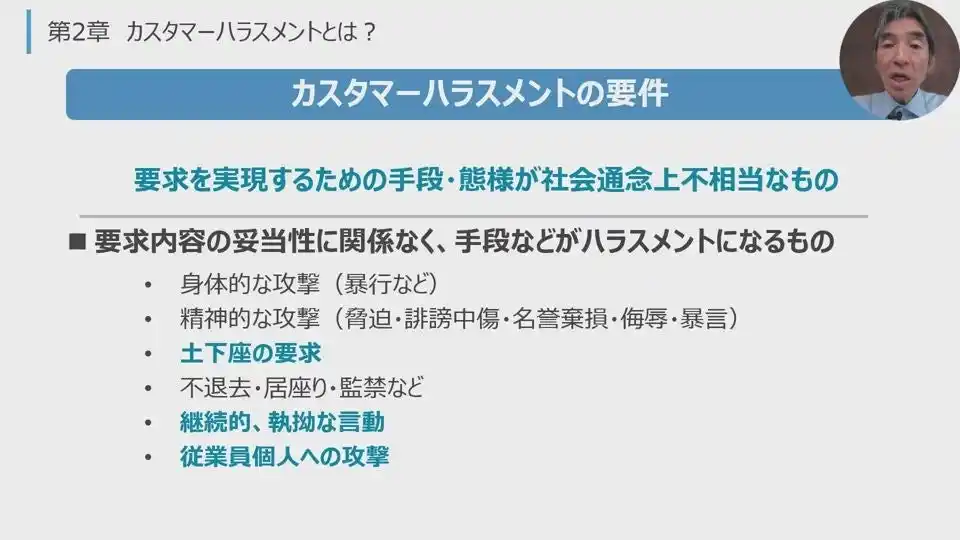 企業や組織内のハラスメントにはさまざまなタイプがあります。代表的なハラスメントのひとつであるパワーハラスメントの基本や、カスタマーハラスメントとアカデミックハラスメントの実態とその防止対策について解説します。 |