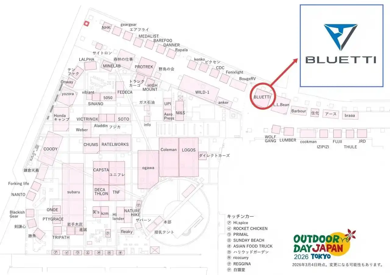 ポータブル電源およびクリーンエネルギーソリューションのグローバルリーダーとして15年以上にわたり信頼と実績を築いてきたBLUETTI JAPAN株式会社(本社:東京都千代田区、以下BLUETTI)は、2026年4月4日(土)~5日(日)に代々木公園にて開催される国内最大級のアウトドアイベント「アウトドアデイジャパン東京2026」に出展いたします。