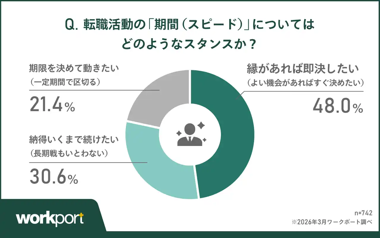 ■【転職活動の期間】約半数が「縁があれば即決」、3割は長期戦も許容 期間に縛られない転職スタンス |