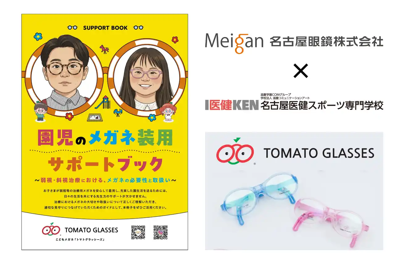 | こどもメガネ「トマトグラッシーズ」の日本国内総代理店を15年以上務める名古屋眼鏡株式会社(愛知県名古屋市、代表取締役社長:白濱 亮)は、名古屋医健スポーツ専門学校こども保育科との産学連携により、「園児のメガネ装用サポートブック」を共同制作いたしました。本冊子は、メガネ装用が必要な園児の保護者から保育者へ渡していただくことを想定したコミュニケーションツールです。双方の共通理解を深め、保育現場におけるこどもの安心・安全なメガネ装用体制を整えることを目的としています。2026年4月以降順次、主に「トマトグラッシーズ」を取り扱うメガネ店を通じて、こどもメガネの購入者向けに配布を予定しています。 | |||||||||