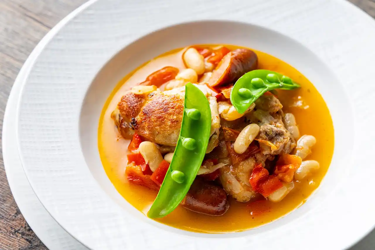 イタリアの郷土料理である鶏肉のトマト煮込みを、北海道育ちの鶏肉とチョリソーでアレンジ。ピリッとした辛味をアクセントに、夏らしくさっぱりと仕上げました。 |