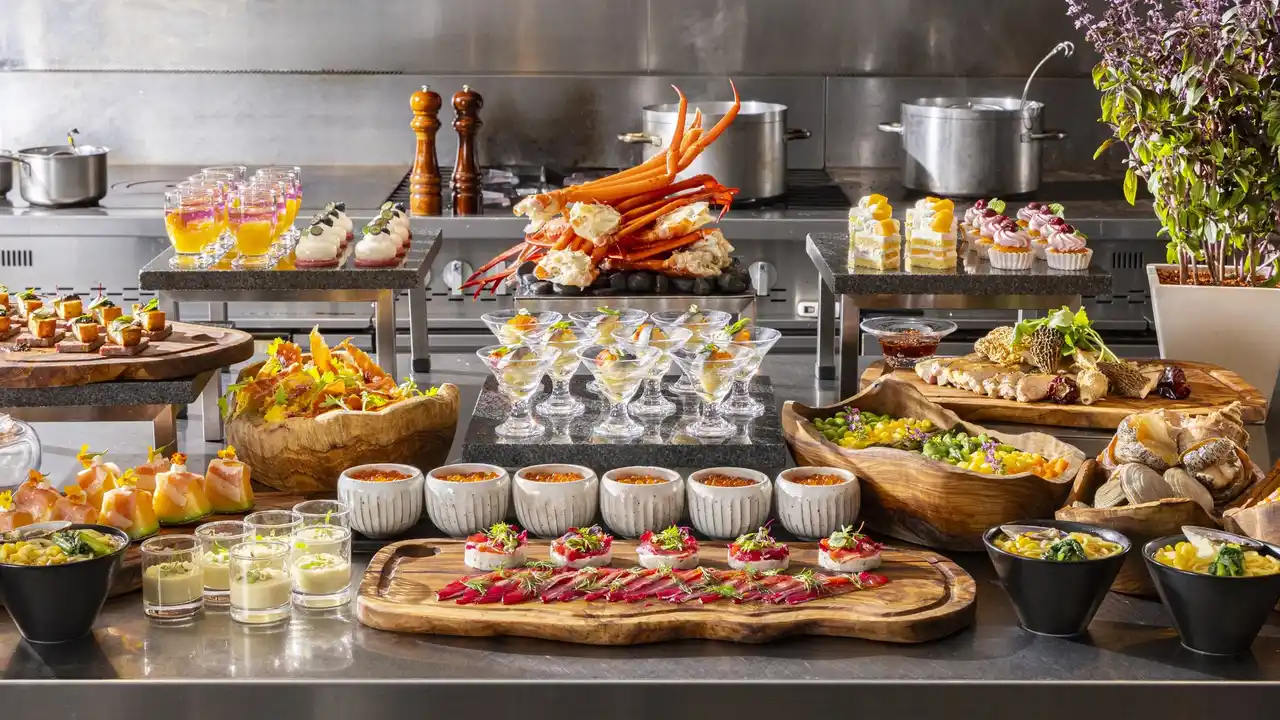 まさし)。水口が現地で出会い魅了された旬の味覚を、コンラッド東京ならではの多彩なアレンジでお届けいたします。夏にしか味わえない「横綱あさり」と称される大粒のあさりをはじめ、高級魚キンキ、甘味が凝縮した夏野菜など、この季節ならではの北海道産食材がビュッフェ台を彩ります。さらに、4種のコンディメントで異なる味わいを楽しめるズワイガニに加え、メロンのショートケーキや、「不老長寿の実」とも呼ばれる特産品ハスカップを使用したムースなど、素材の魅力を生かしたスイーツ5種も心ゆくまでご堪能いただけます。 |