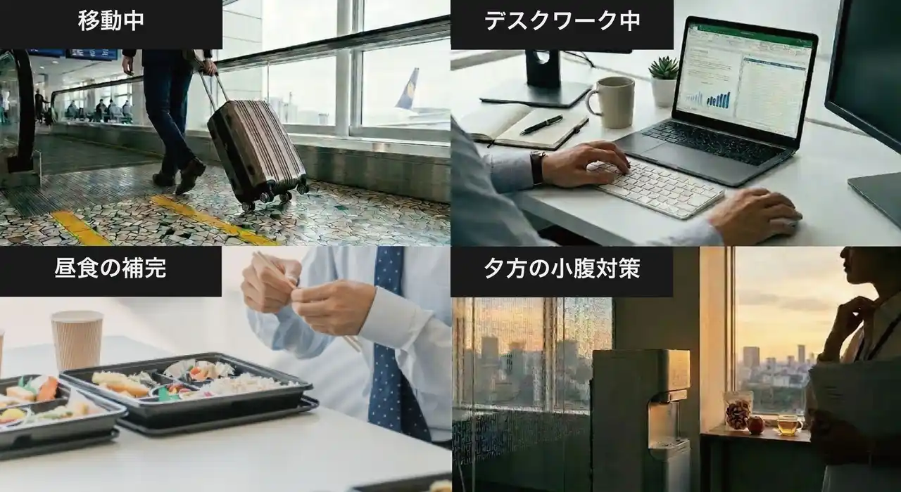 忙しい日常でも取り入れやすい形状と保存性により、日中の食生活を補う新しい選択肢を提案します。 |