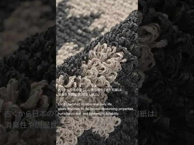 和紙は古くから日本の暮らしの中で使われてきた天然素材であり、軽さや丈夫さに加え、優れた吸湿性・速乾性、調湿性、消臭性などの機能を持っています。 BasShuのWASHI Bath Matは、この和紙繊維の特性を活かしながら、日々の暮らしに心地よく寄り添うアイテムとして生まれました。 |
