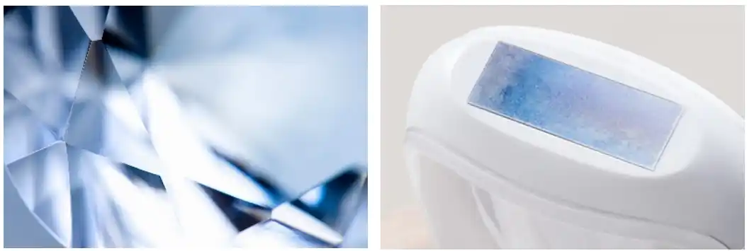 Ulikeの光美容器にはすべて、高純度のA++級サファイアクリスタルを照射面に採用した独自開発の「サファイア冷感技術」を搭載。照射部位をひんやり心地よく冷却することで、光を照射した時のバチンとした刺激や熱感を抑えた“痛みレス”(*5)を実現します。冷やしながら照射できるため、ケア前後の保冷剤や冷却ジェルは不要になり、快適で続けやすいムダ毛ケアを叶えます。 |