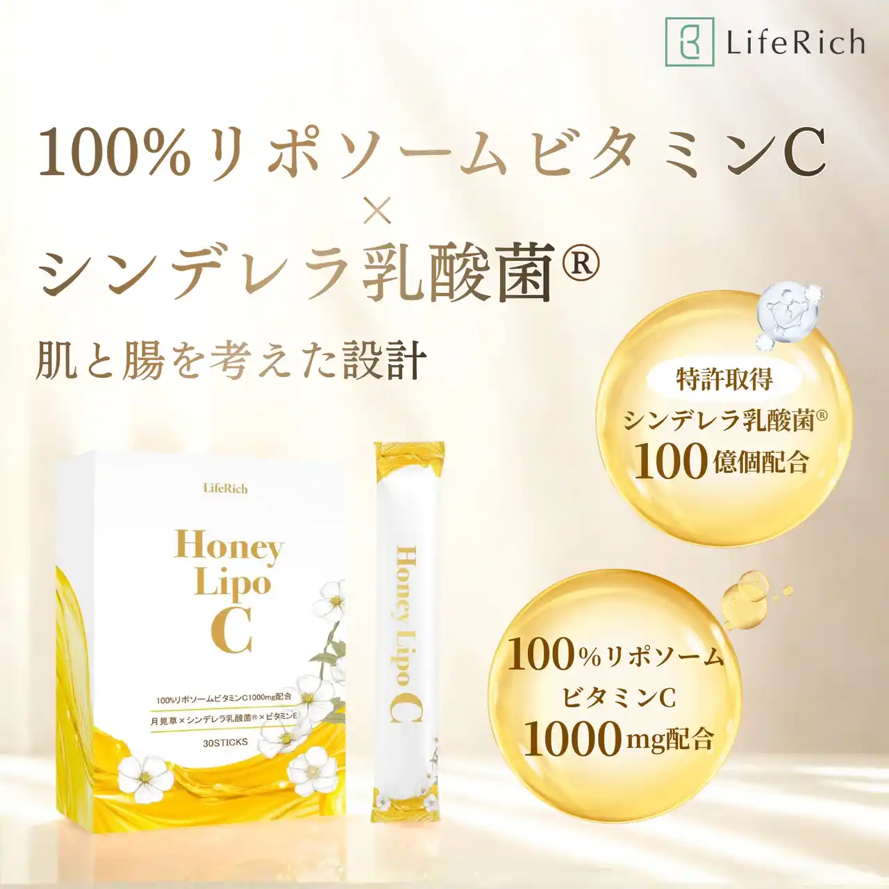 | 腸内環境を整える「腸活」やインナーケアへの関心が高まる中で、肌と腸の両方に着目したインナーケアサプリメント「ハニリポC」が発売されました。 | |||||||||