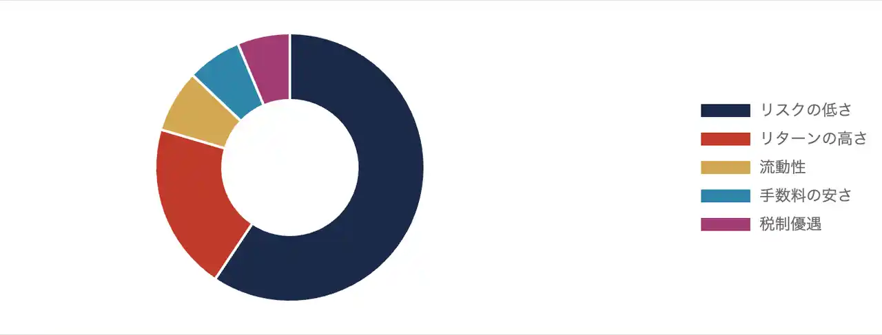 「手数料の安さ(6.6%)」「税制優遇(6.3%)」への関心も根強く、コストを抑えながら着実に資産を増やしたいという意識が見て取れます。 |