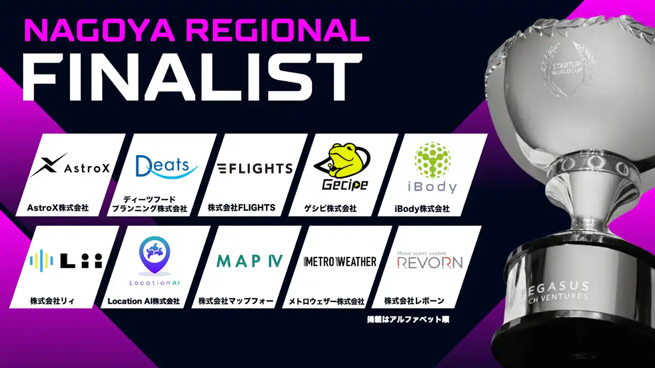 ペガサス・テック・ベンチャーズ(本社:米カリフォルニア州サンノゼ、代表:アニス・ウッザマン)は、「スタートアップワールドカップ2026」名古屋予選に登壇するファイナリスト10社の決定をお知らせいたします。 |